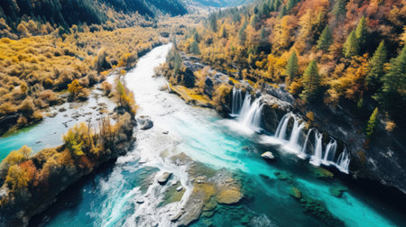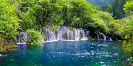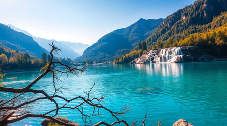 view of colorful lake and waterfall in jiuzhaigou national park, Sichuan, China