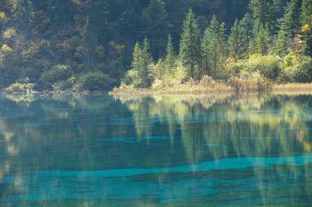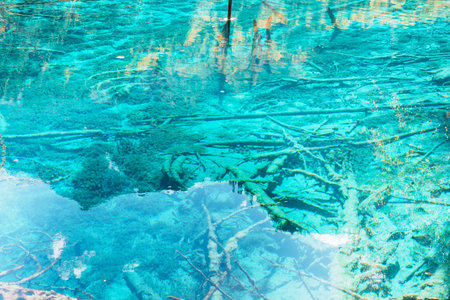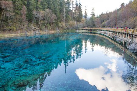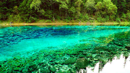 Beautiful crystal clear water lake view in Jiuzhaigou in Jiuzhai Valley National Park