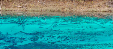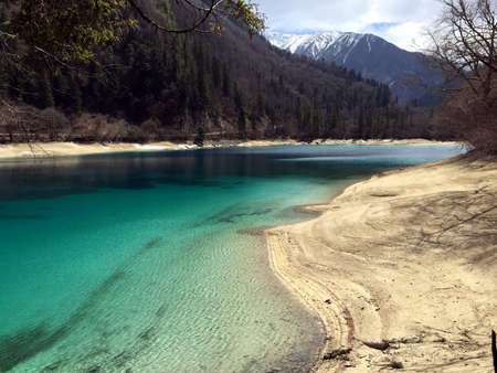 Clear blue Turquoise color lake found in the Jiuzhai valley nature reserve and national park of China