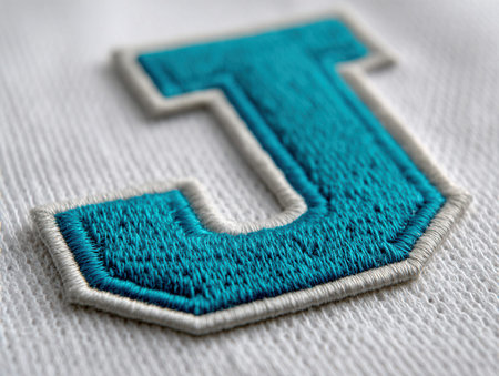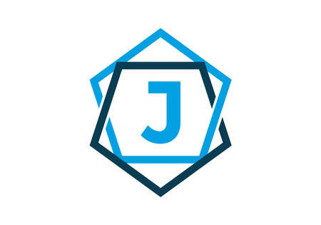 Blue color of initial letter J in pentagon frame design