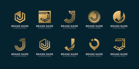 Set of letter J logo template with creative golden concept Premium Vector