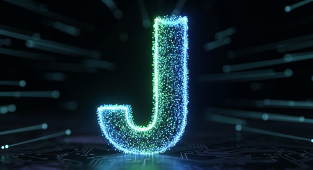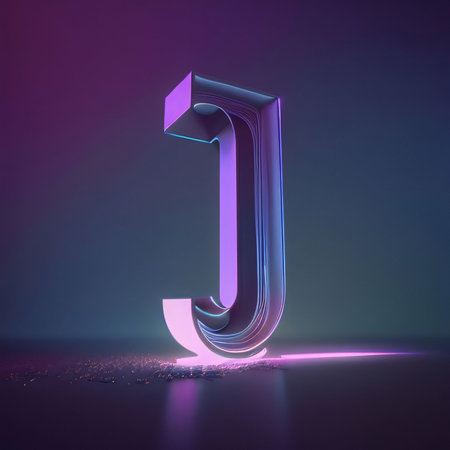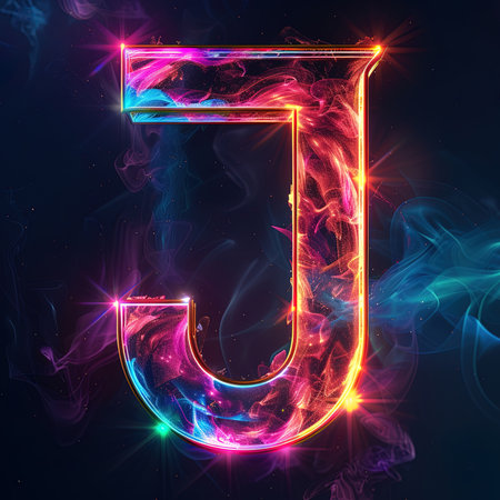 Graphic alphabet letters: Neon alphabet letter J uppercase. 3D rendering.