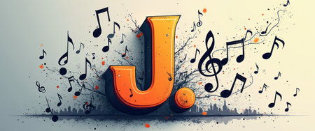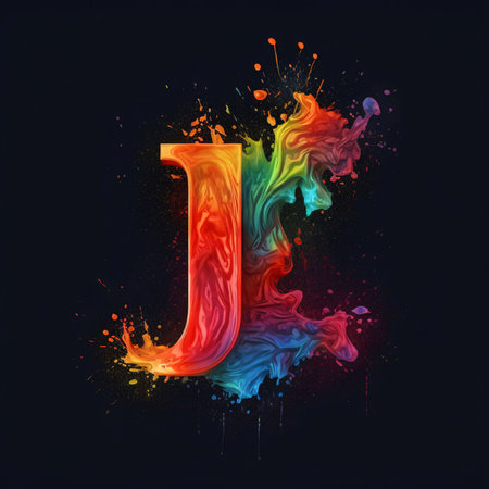 Graphic alphabet letters: Letter J painted with colorful paint splashes, isolated on black background