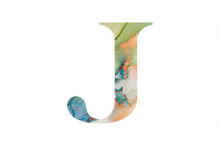 Initial letter J with abstract hand-painted alcohol ink texture. Isolated on white background. Illustration for headline and design