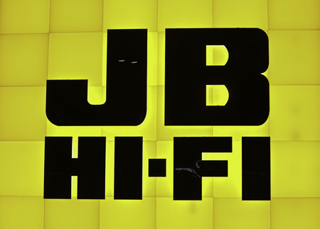 Tweed, NSW / Australia - April 02 2019 : Yellow and black JB hifi sign australia