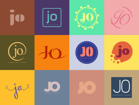 JO logo company template. Letter j and o logotype. Set different classic serif lettering and modern bold text with design elements. Initial font typography. Collection trendy business identity.