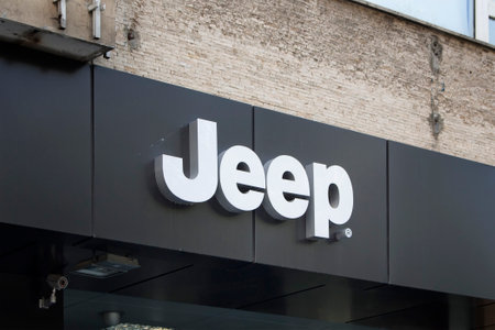 Macon, France - May 27, 2018: Jeep on a wall. Jeep is a brand of American automobiles and a wholly owned subsidiary of Fiat Chrysler Automobiles