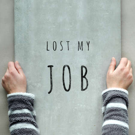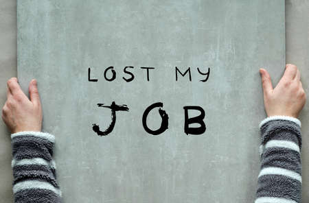 Job loss due to COVID-19 virus pandemic concept. Unrecognizable person holds sign I lost my job