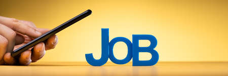 job inscription with colorful letters over blue background, panoramic image