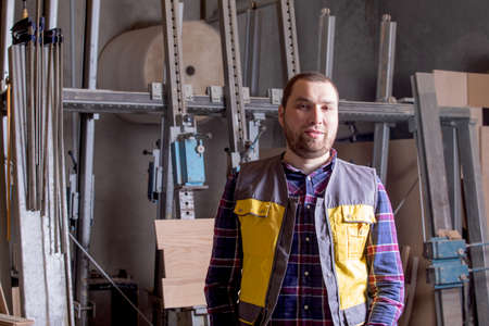 Professional Carpenter man authentic Handcraft Wood worker. Joiner or furniture builder home diy projects maker male.