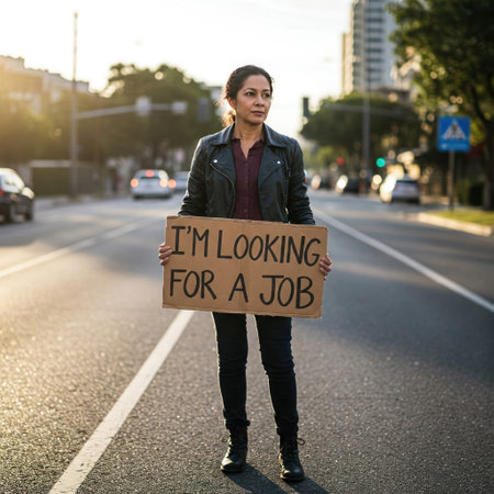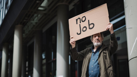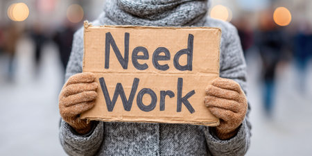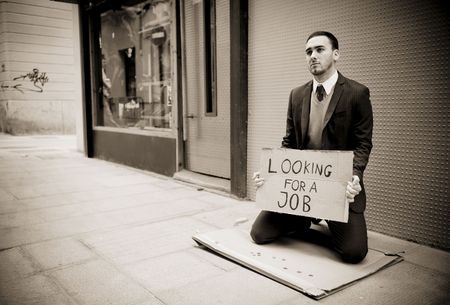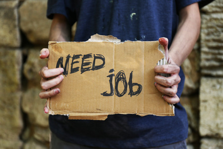 unemployed person holding a cardboard sign with the inscription looking for a job
