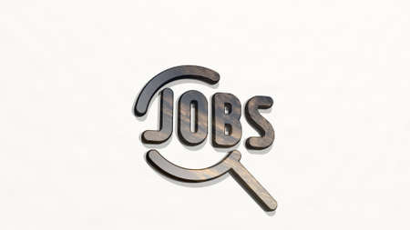 JOB SEARCH made by 3D illustration of a shiny metallic sculpture on a wall with light background. business and concept