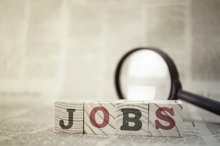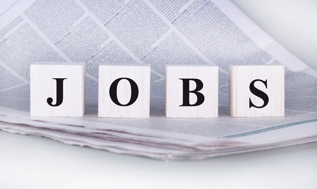 closeup jobs wording on classifieds ads and newspaper, recruitment and employment concepts and ideas