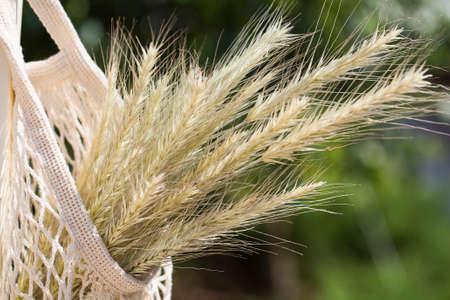 Wheat spikelets, a close-up picture. Ripe wheat ears.