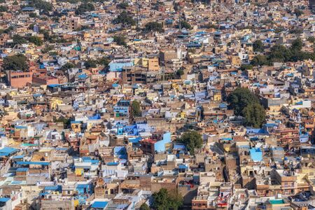 Aerial view of Jodhpur, India. Jodhpur is a city in the Thar Desert of the northwest Indian state of Rajasthan.