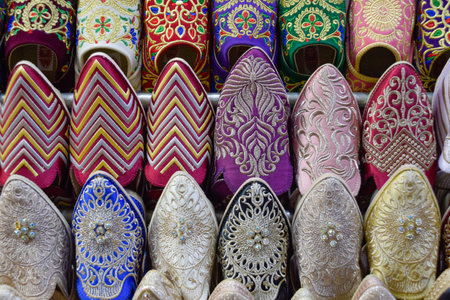 Traditional colorful slippers for sale at Souq Waqif arabic market in Doha