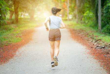 Asian woman jogging in the park, healthy lifestyle and sports concept. woman jogging in the park in sunlight on a beautiful summer day