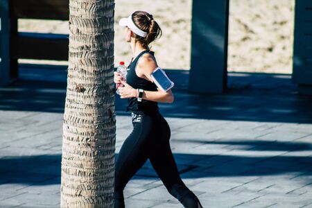 Tel Aviv Israel January 11, 2020 View of unidentified people running on Herbert Samuel Promenade in Tel Aviv in winter
