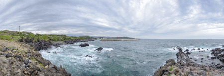 It is a beautiful summer landscape of the coast of Jeju Island.