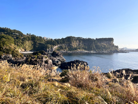 It is a beautiful scenery of Seogwipo coast in Jeju Island.