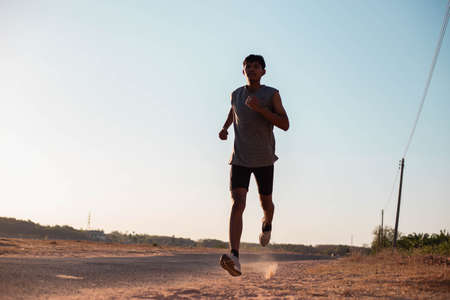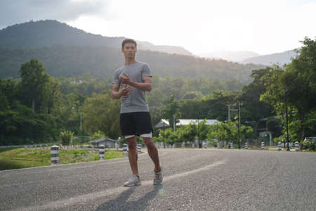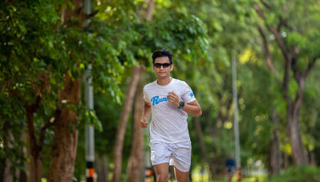 Asian men jogging and running in the park