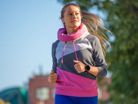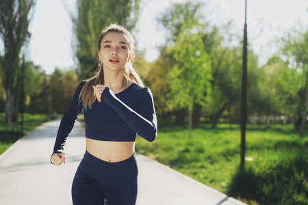 Young woman jogging in the morning. Healthy lifestyle concept.