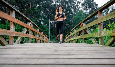 Young sporty woman wearing sportswear running in the public park in the morning.