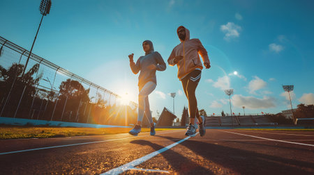 Athletes Running on an Outdoor Track at Sunrise, Capturing the Spirit of Competition and Health