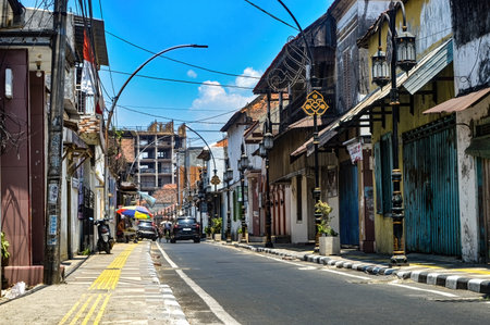Surakarta, Indonesia - September 1, 2021: A street atmosphere in the city of Surakarta which has unique characteristics and is the center of Javanese culture and customs tourism