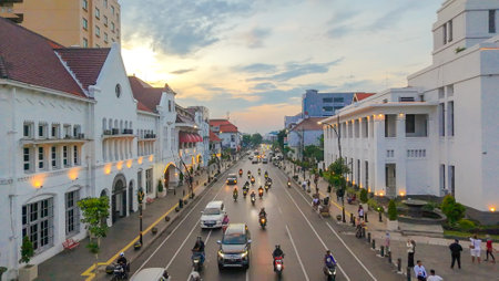 street view in an old city left over from Dutch colonialism in Indonesia which is filled with historic buildings that look antique ,Indonesia, 17 September 2023