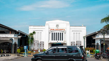Yogyakarta, Indonesia - Nov 19, 2021: Landscape front view of Yogyakarta Station building, also known as Jogjakarta Station or Tugu Station. A historical station in the city of Yogyakarta.
