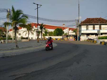 Kota Lama, Semarang / Indonesia - July 6 2020 : Cyclist at Kota Lama, Semarang, Central Java, Indonesia.