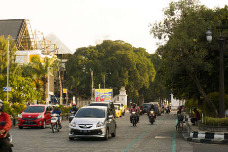 THE HEAVY TRAFFIC FLOW IN THE TUGU YOGYAKARTA TOURIST RESERVE AREA. : YOGYAKARTA, INDONESIA - 02 OCTOBER 2021