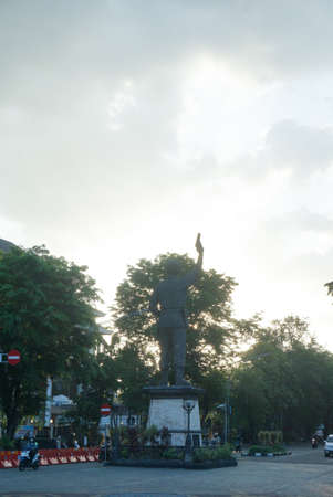 Surakarta, Indonesia – December 20, 2021: Gladak Statue or the Slamet Riyadi Statue is a form of appreciation to Captain Slamet Riyadi in the city of Solo in the afternoon. Jalan Tugu Slamet Riyadi