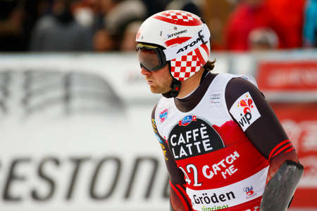 Val Gardena, Italy 18 December 2015. ZRNCIC DIM Natko (Cro) competing in the Audi FIS Alpine Skiing World Cup Super-G race on the Saslong course in the Dolomite mountain range.