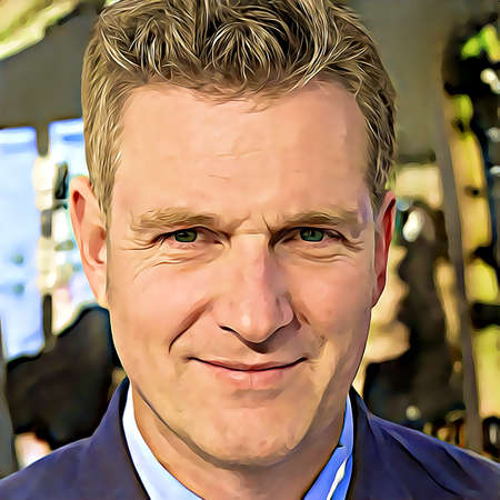 A man with a short haircut and a neutral expression poses in a beige shirt against a white background.