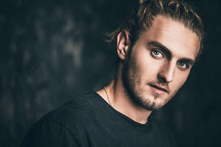 Portrait of young handsome man with blond hair