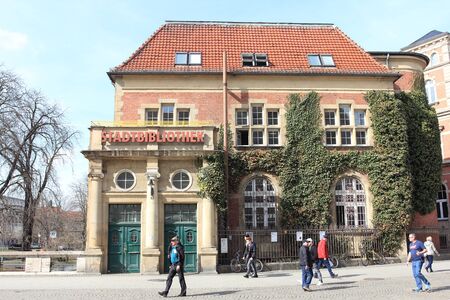 Carl-Schurz Street, Berlin, Germany April 3, 2018: the central shopping street in the old town of Spandau is a quiet pedestrian area with department stores, specialty shops and restaurants.