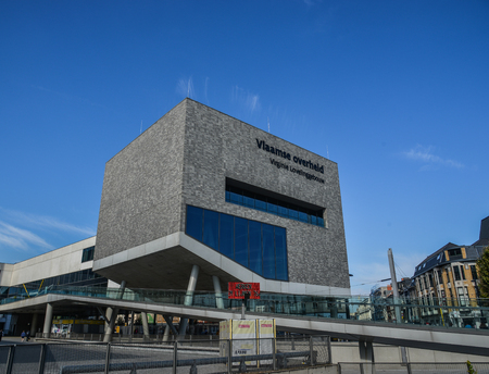 Bruges, Belgium - Oct 6, 2018. A modern building in Bruges, Belgium. Bruges is the capital and largest city of the province of West Flanders, Belgium.