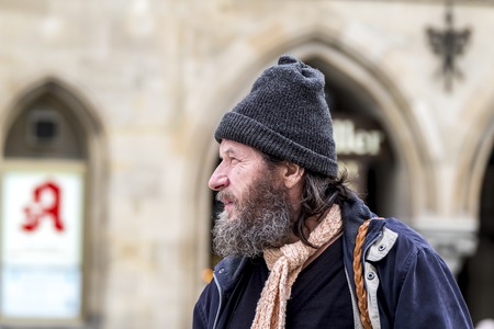 Munich / Germany - February 15 2018: Man observing the activitiies at Marienplatz