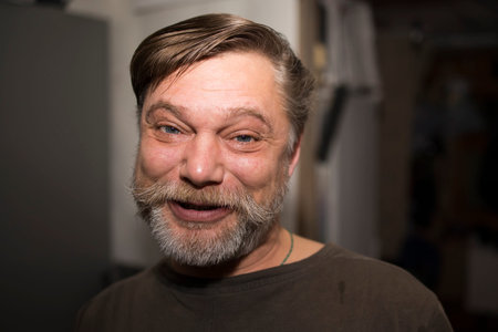 mature handsome man portrait with grizzled beard hair, male beauty