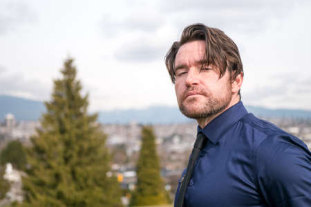 Outdoors portrait of middle age man at the spring, summer or autumn day