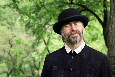 Portrait of an elderly man with a beard in the park.