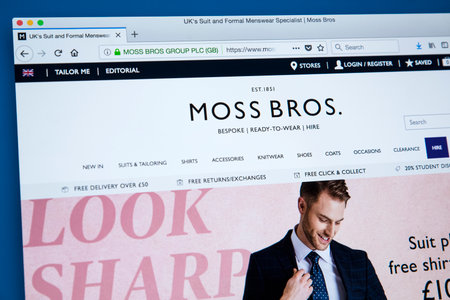 LONDON, UK - FEBRUARY 8TH 2018: The homepage of the official website for Moss Bros - one of the top menswear stores in the UK, on 8th February 2018.