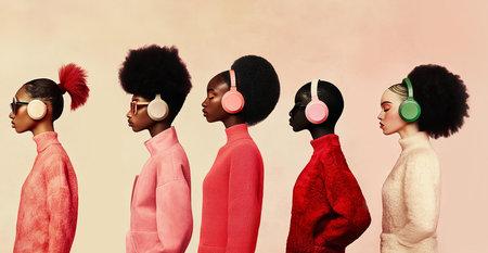 Diverse group of women passionately singing together into a microphone, creating a powerful and captivating performance.
