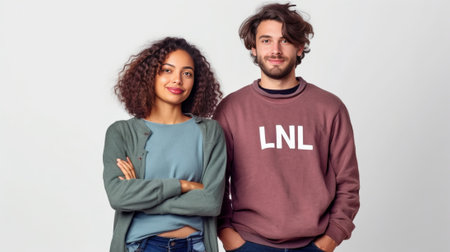 different nationalities. men and girls of model appearance on a gentle background. generative ai.