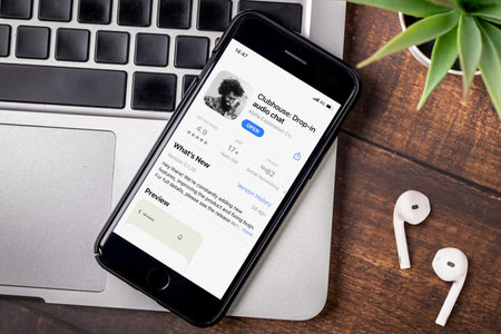 Antalya, Turkey - January 30, 2021: Clubhouse drop in audio chat application view on the smartphone.