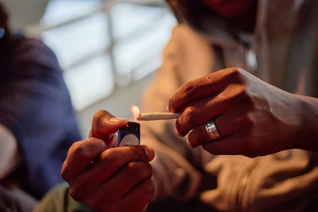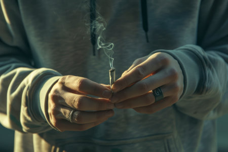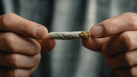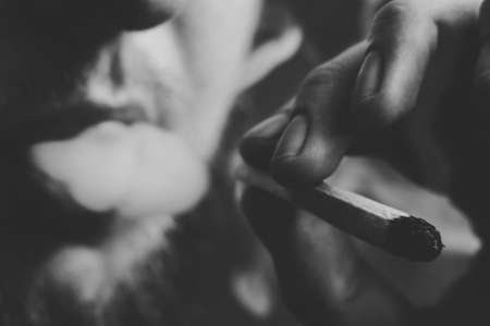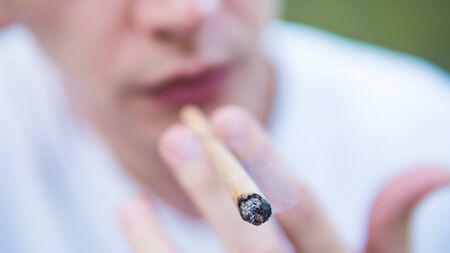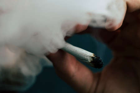 Young doing a marijuana joint. Close up smoke cannabis as a concept of alternative medicine and legalization