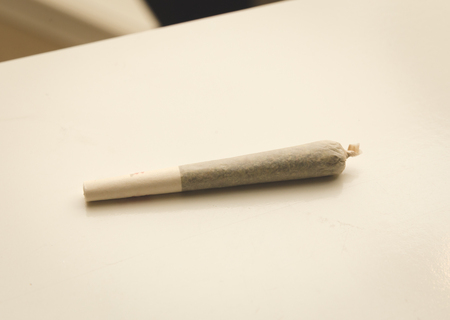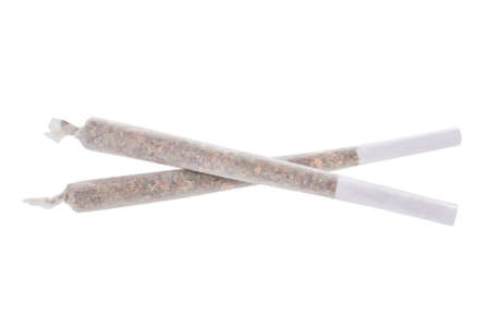 A rolled marijuana joint, ready for use. Isolated on white background.