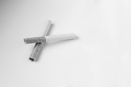 joint With lighter marijuana in hand, weed, Cannabis buds on white table, close up,